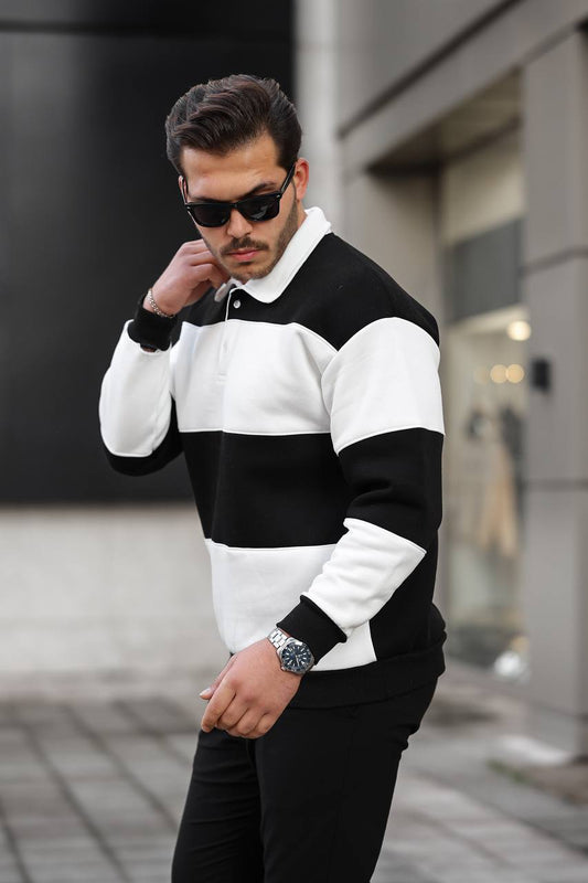 36% İndirim3 İplik Parçalı Polo Yaka Sweat
